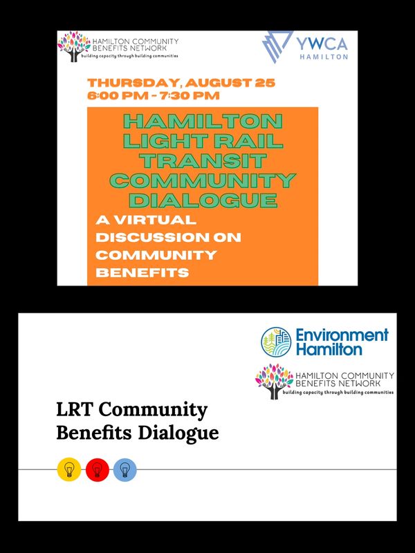 HCBN has conducted several community dialogue sessions in person and virtually. Many were conducted in partnership with other local organizations such as ACORN Hamilton, Environment Hamilton, CityLab in Residence (SIR), and the First Unitarian Church. We also designed and distributed three surveys to gather data on community benefits of the LRT. The findings from both the community benefits surveys, and community dialogue sessions outlined 8 major themes around community benefits and the Hamilton LRT: