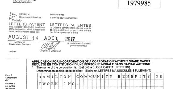 After meetings with stakeholders, community groups, labour organizations and residents, the HCBN was incorporated on Aug 14th, 2017. At the first Annual General Meeting a Board of Directors was elected by the membership. The structure of the HCBN is based on a not-for-profit model with a working board of directors, with each member organization getting one vote.